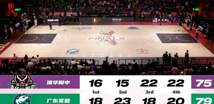 末节广东实验始终压着节奏打,王洪泽打板三分命中,何文炜反击拉杆上篮再进重新拉开双位数领先。暂停过后,清华附中连得4分止血,但王洪泽三分还能回应,清华附中进攻有所着急,何文炜转换加抛投领先到12分。侯冠呈和洪麦连续反击还能保持悬念,刘朕赫犯满被罚下,柴梓涵一攻一传助清华附中追到差3分,洪麦关键三分不中,夏振峰两罚一中几乎杀死比赛,最终广东实验79-75险胜清华附中,拿到总冠军!