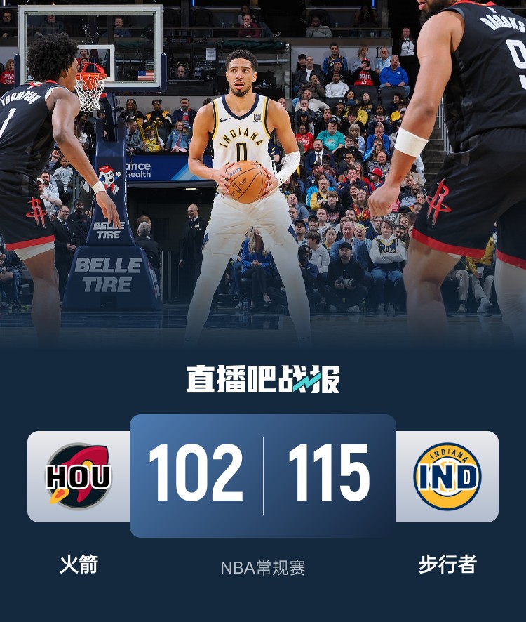 3月5日讯 NBA常规赛,步行者今日迎战火箭,前者上场比赛战胜公牛,后者则是遭遇两连败,此役范弗里特和马瑟林缺战。