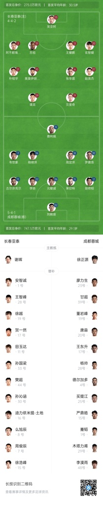 04月26日讯 4月26日15:30中超第9轮,长春亚泰主场对阵成都蓉城。赛前双方比赛名单公布。