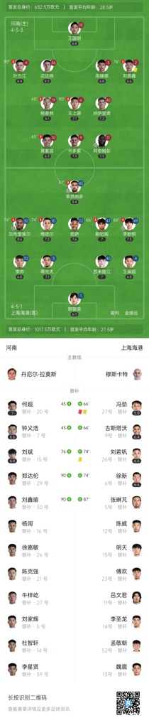 第32分钟,王燊超右路传中被碰了一下,莱昂纳多得球顺势一拨,跟进的李新翔抽射得手,上海海港1-0河南。↓