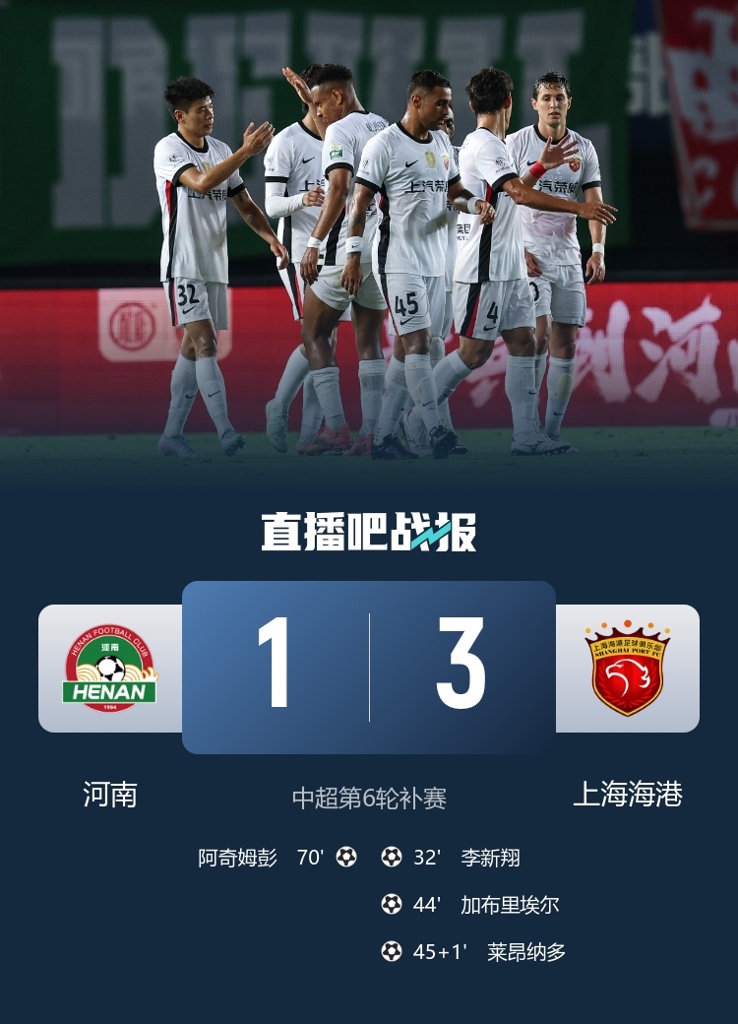 6月18日讯 北京时间6月18日19:35,中超第6轮补赛,河南队坐镇郑州航海体育场迎战上海海港。上半场阿奇姆彭中框+屡失良机,莱昂纳多助攻李新翔破门,随后加布里埃尔接到蒯纪闻的传球再下一城,莱昂纳多补时建功,上海海港暂3-0河南队;下半场阿奇姆彭扳回一球,冯劲两黄变一红被罚下,最终上海海港3-1河南队,五轮不败距榜首4分,仍排在积分榜第四位。