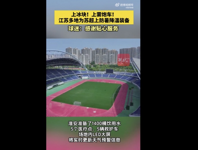 7月5日讯 本周末的苏超第六轮联赛全面打响,现代快报发文谈到了各队主场应对高温的办法。