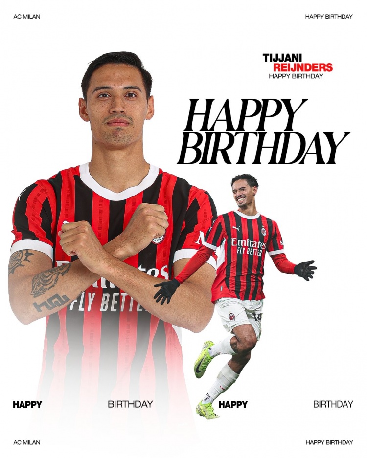 AC米兰制作赖因德斯生日海报,并配文写道:生日快乐,赖因德斯。你曾是红黑军团的一员,永远都是我们历史的一部分。祝你在新的篇章中一切顺利!