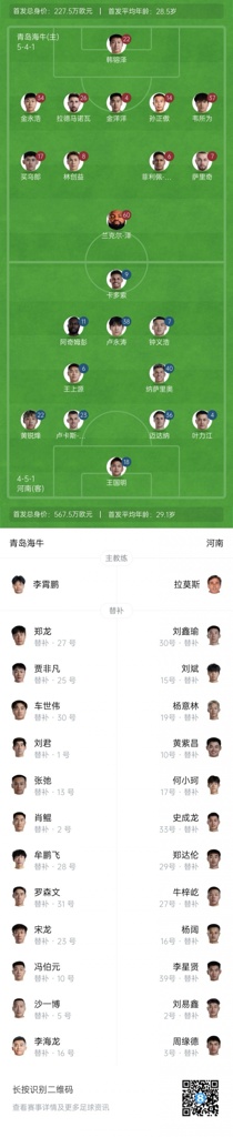 08月29日讯 中超第23轮,青岛海牛vs河南。赛前首发阵容已公布。