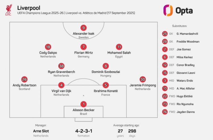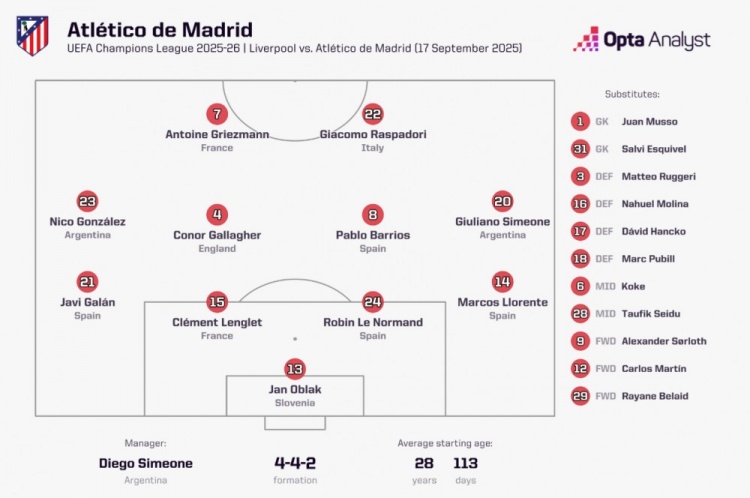 9月18日讯 欧冠联赛阶段首轮比赛,利物浦在安菲尔德迎战马竞。本场比赛的首发目前已经出炉,利物浦方面没有英格兰人进入11人阵容,而马竞方面有1名英格兰球员进入首发阵容,那就是加拉格尔。