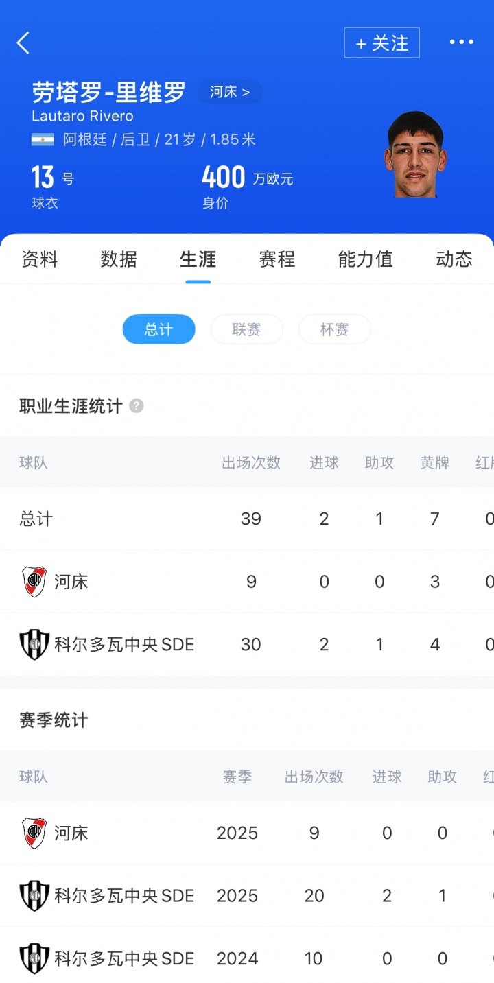10月04日讯 阿根廷国家队公布了新一期名单,其中河床21岁后卫劳塔罗-里维罗入选。阿根廷媒体TYC体育发文介绍了里维罗。